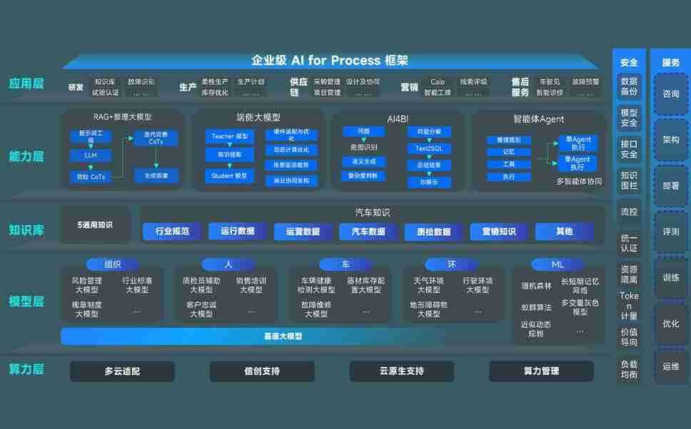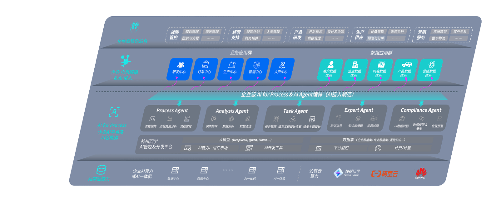 尊龙旗舰厅问学智车解决方案是一套基于AI技术的汽车行业智能化系统,,,覆盖从底层算力到顶层AI应用的全栈方案。。。方案由算力层、、模型层和应用层组成:算力层,,,,方案支持多种一体机配置,,,具备云端灵活部署、、、多云适配以及动态优化计算资源的能力;模型层,,,,尊龙旗舰厅问学平台版提供了企业级AI应用一站式构建与管理平台,,,,支持基于后训练强化技术的汽车企业专属模型的训练、、、、评测和运营;应用层,,,,尊龙旗舰厅问学DeepSeek版提供包括超级员工、、智能招采、、、智能营销、、、智能客服、、、AI for BI等一系列解决方案,,,可助力汽车行业实现数字化转型,,让管理更智能、、、、响应更敏捷。。